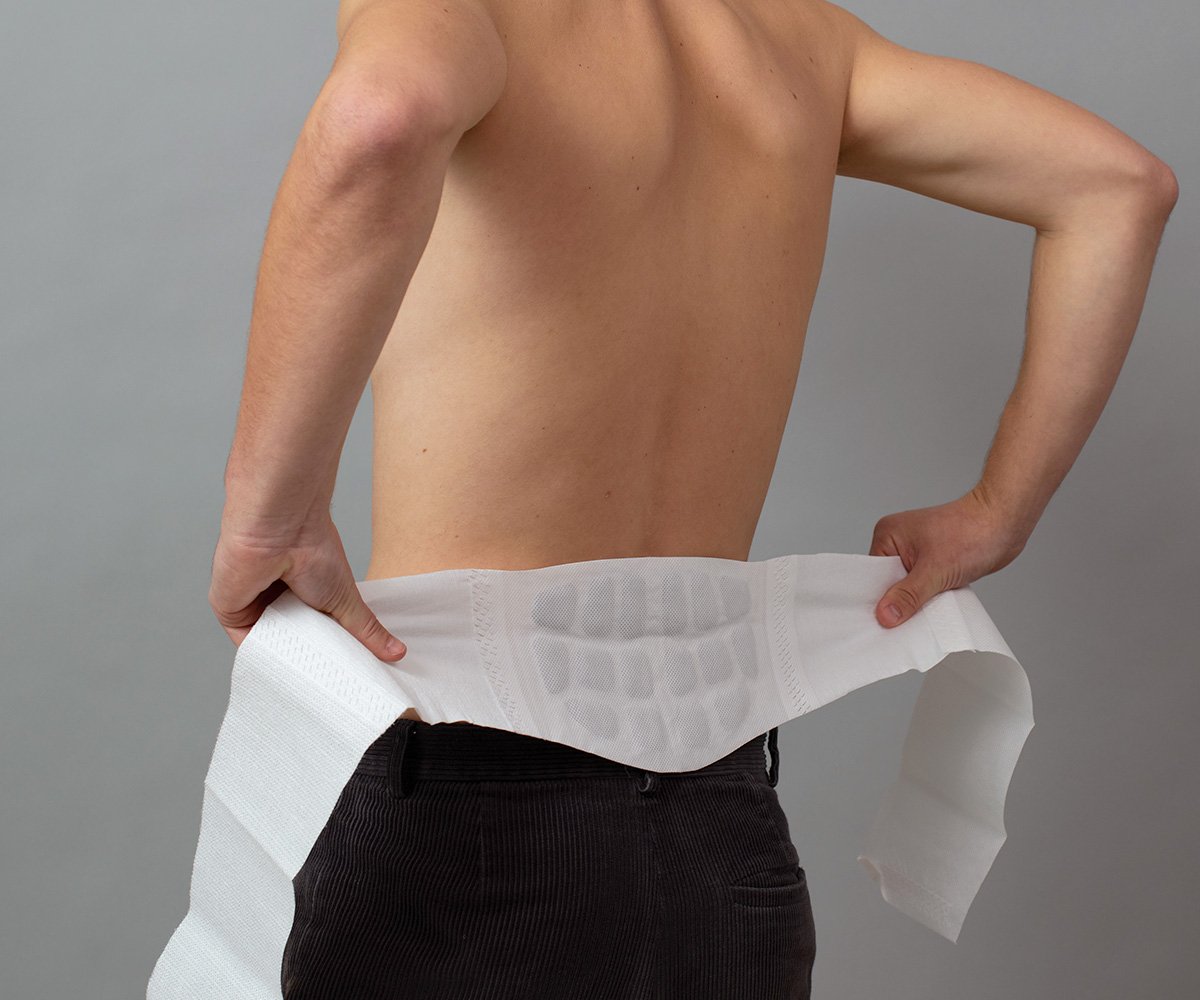 Place it with the darker, softer side on the affected part of the back and close the Velcro.