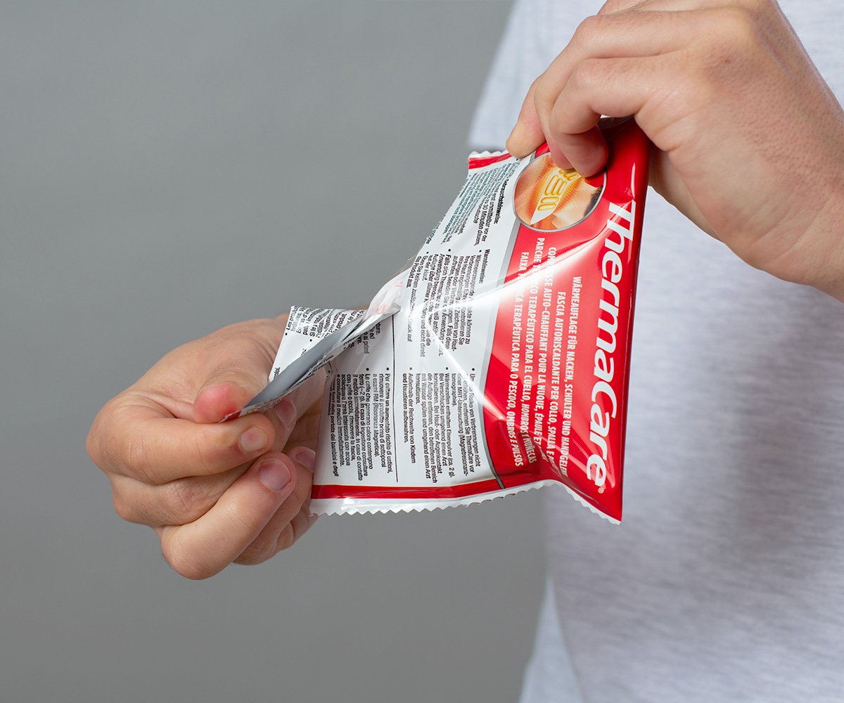 Do not open the airtight packaging of the heat wrap until immediately before use. The heat cells start to heat up as soon as they come into contact with oxygen.